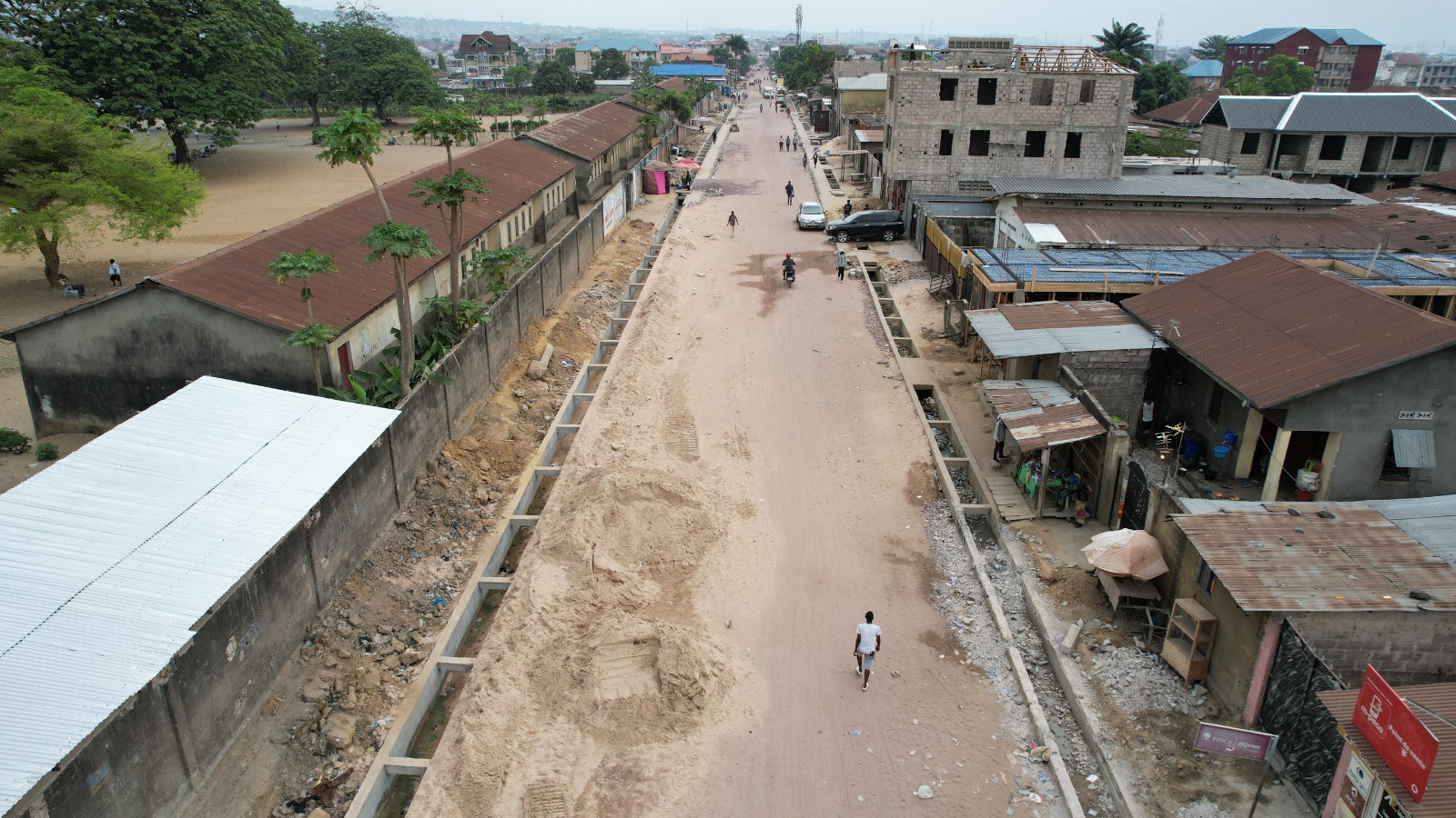 Avec la construction d’un canal à deux chaussées et une passerelle avec le parc Ngobila parallèle à la rivière Funa;