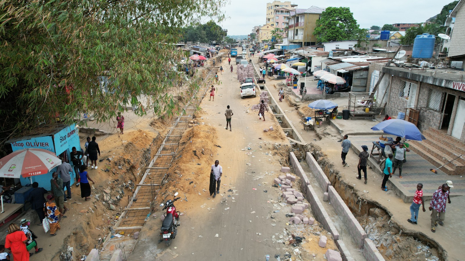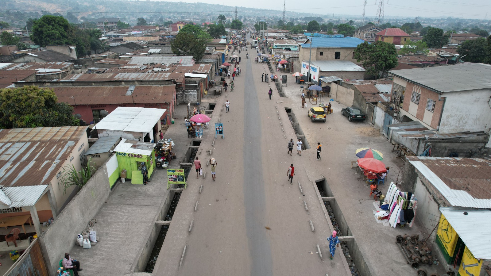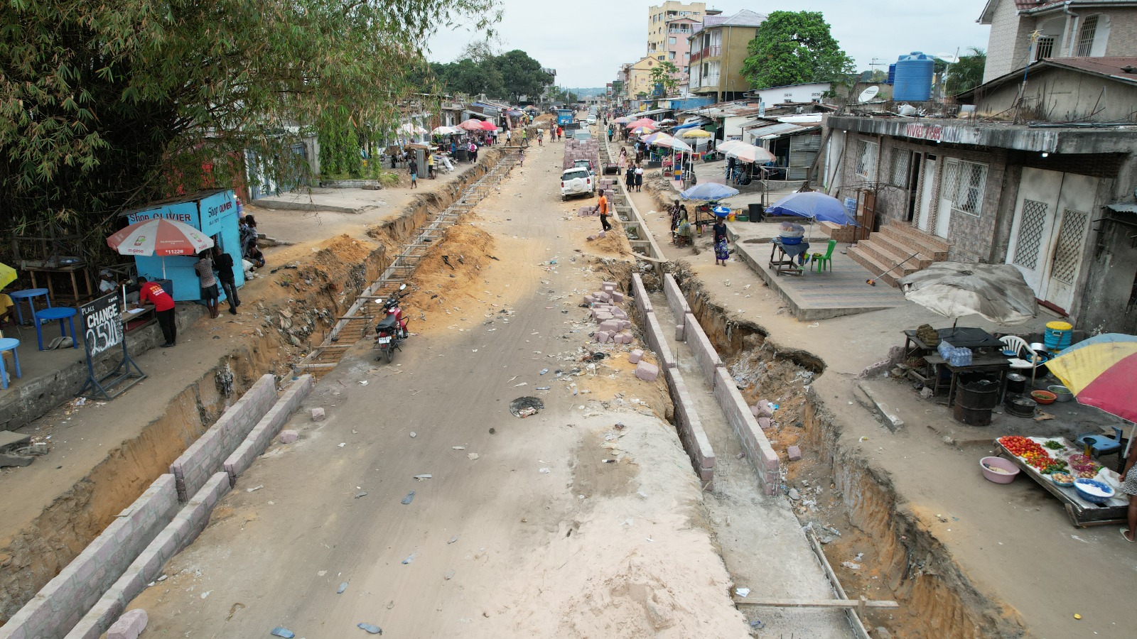 Avec la construction d’un canal à deux chaussées et une passerelle avec le parc Ngobila parallèle à la rivière Funa;