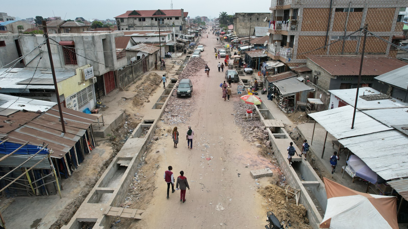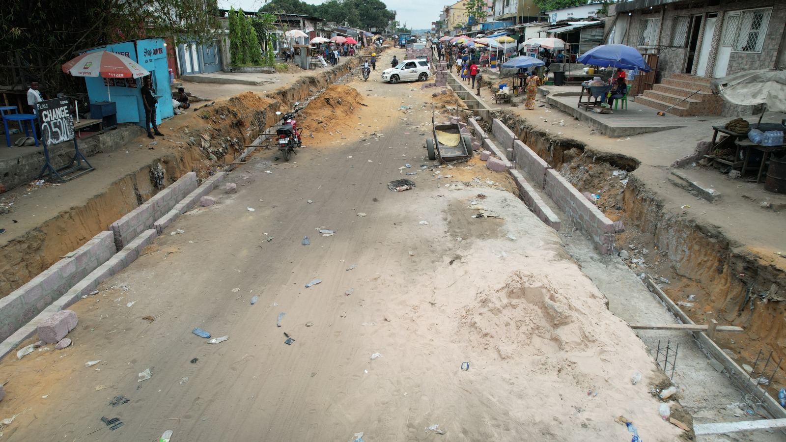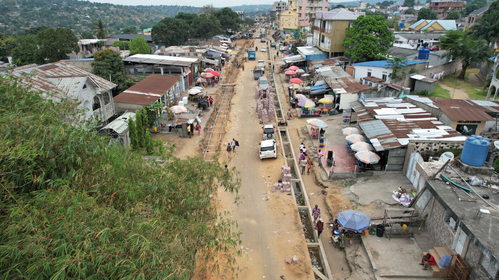 Avec la construction d’un canal à deux chaussées et une passerelle avec le parc Ngobila parallèle à la rivière Funa;